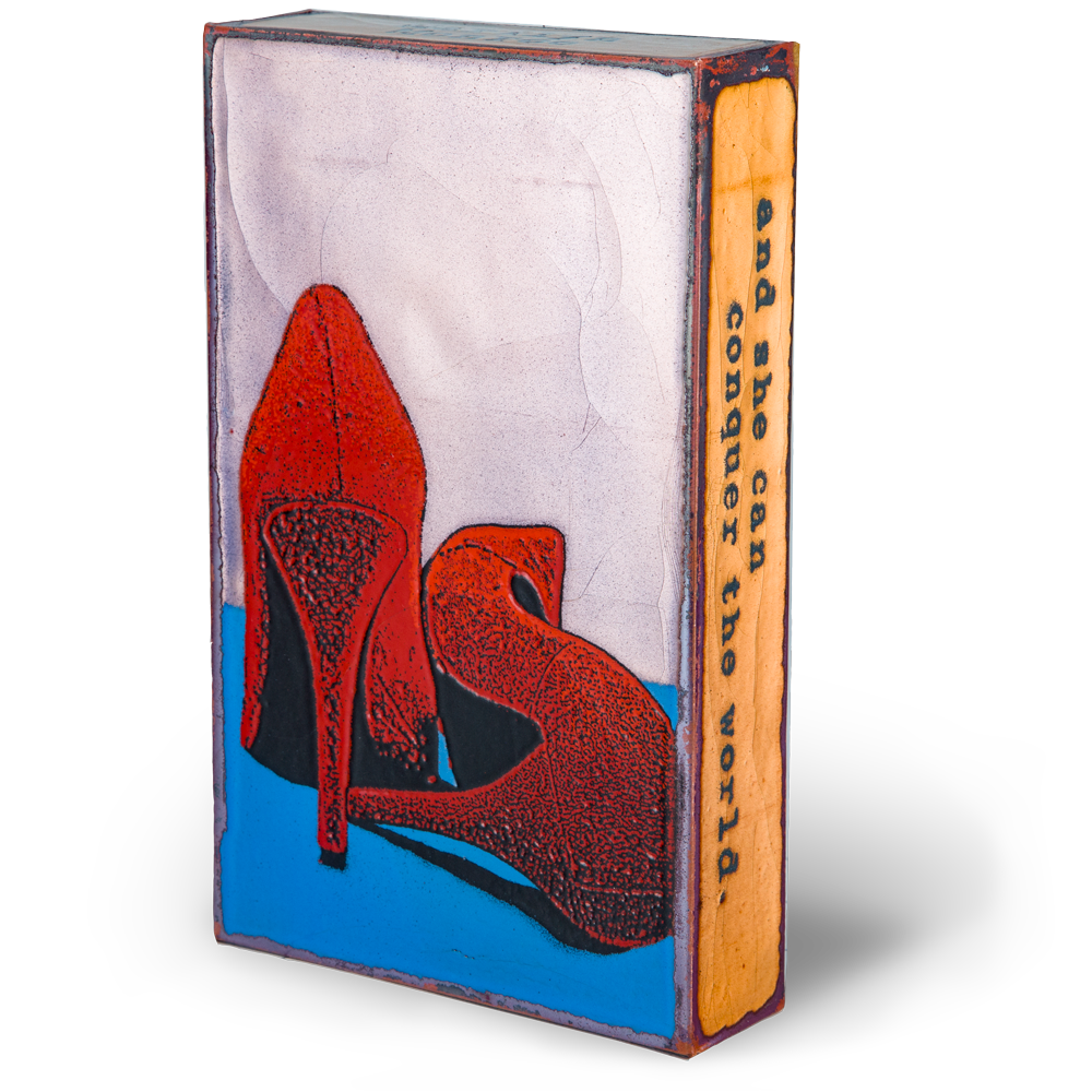 Quote begins on left side and finishes on right- author noted on top. Each Spiritile is made from copper, glass and wood. They can hang on a wall or stand alone, and will never fade or tarnish. Play video in additional photos to see how to hang the Spiritiles!