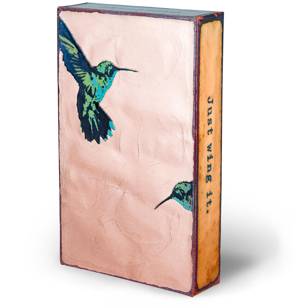 Quote begins on left side and finishes on right- author noted on top. Each Spiritile is made from copper, glass and wood. They can hang on a wall or stand alone, and will never fade or tarnish. Play video in additional photos to see how to hang the Spiritiles!