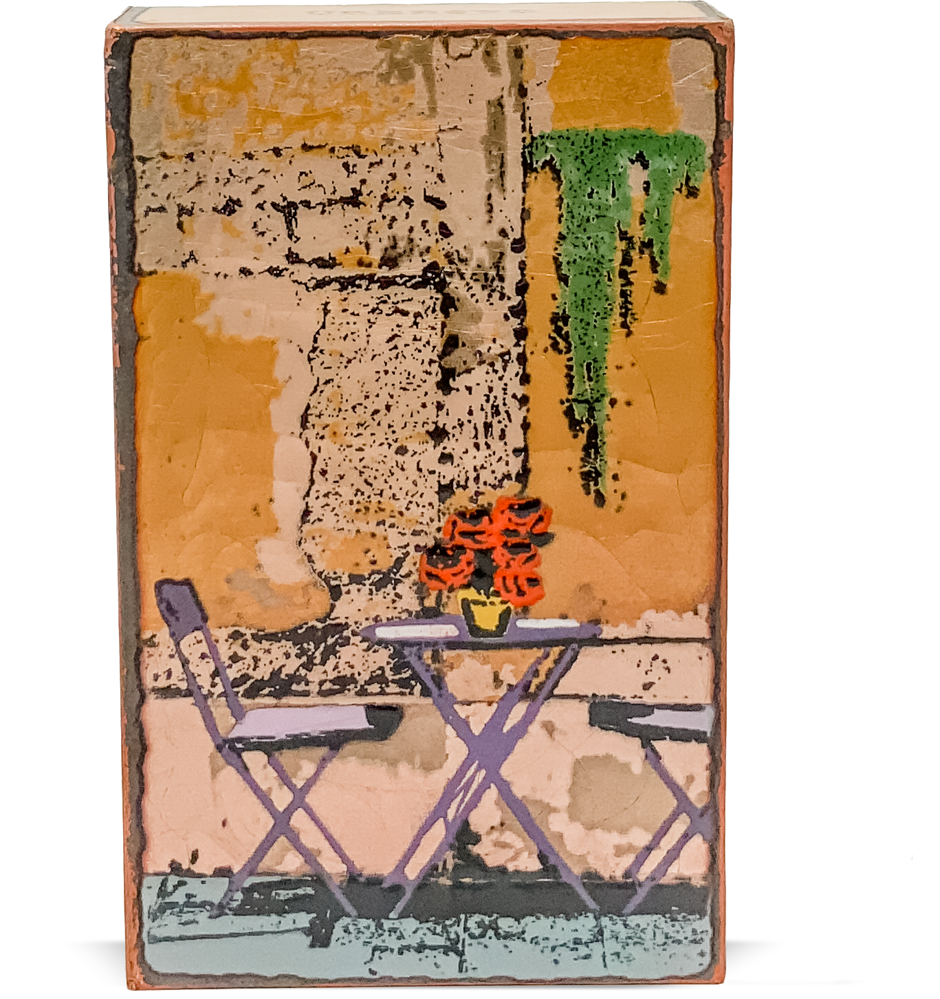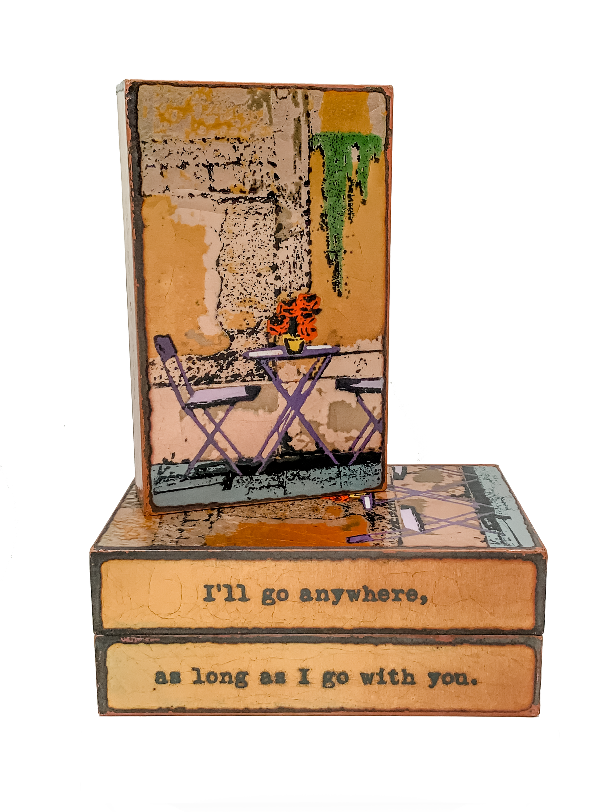 Quote begins on left side and finishes on right- author noted on top. Each Spiritile is made from copper, glass and wood. They can hang on a wall or stand alone, and will never fade or tarnish.