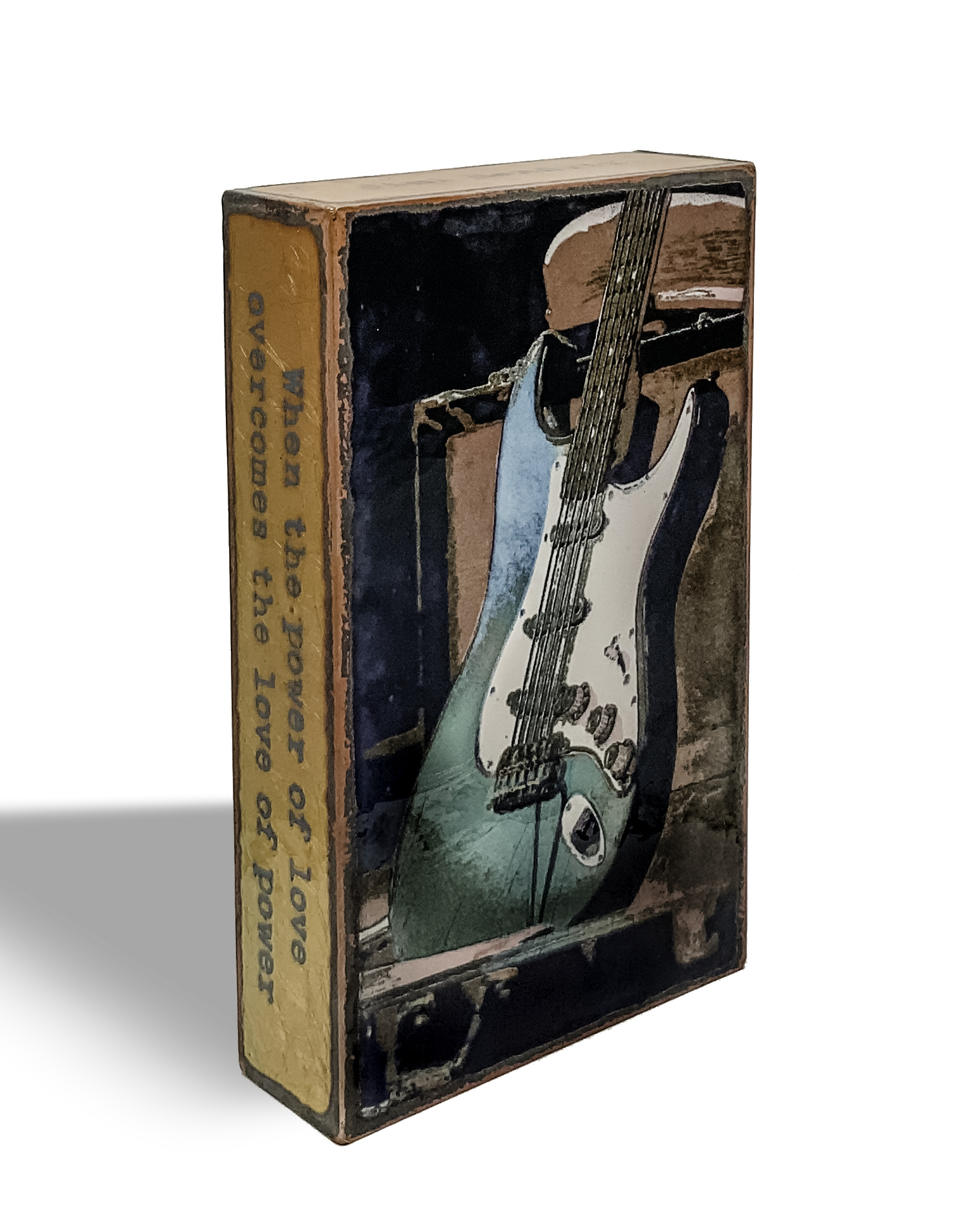 Quote begins on left side and finishes on right- author noted on top. Each Spiritile is made from copper, glass and wood. They can hang on a wall or stand alone, and will never fade or tarnish.