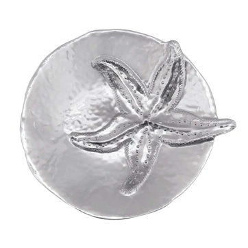 Let the whimsy of the sea wander gracefully into your home with our 20" Starfish Large Serving Bowl. A handsculpted starfish rests atop our gentle wave inspired serving bowl to form a stunning 20" round treasure. Bring underseas treasures to your table with our Seaside Collection. Handcrafted from 100% recycled, buffed-until-brilliant aluminum.