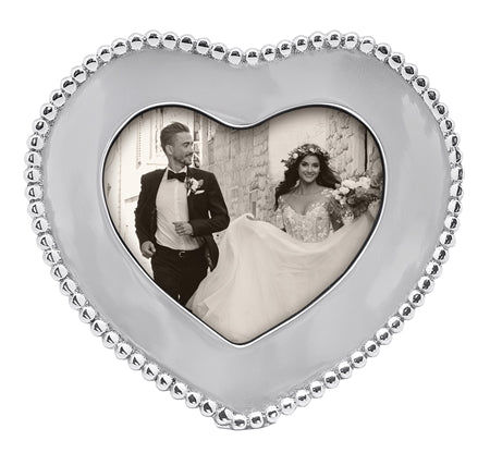 A small, bead edge heart frame allows a photo of you and a loved one to peak out through the heart opening. Part of the "First Comes Love" collection which celebrates the eternal reign of romance.