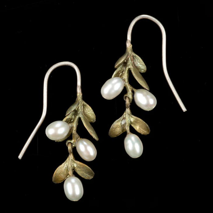 Materials: The Boxwood earrings are cast in hand patinated bronze with white freshwater pearls. The wires are 925 silver.