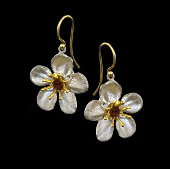 Materials: The Survivor Tree pendant is cast in sterling silver with 24K gold accents. Select styles accent with garnets. Sterling silver ear wire with 24K gold accents.