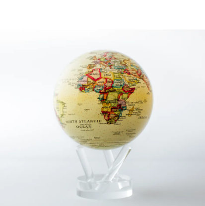 We've taken the standard world map globe and created warmth through a diverse but vivid color palette. The landmasses pair against soft, yellow oceans and each nation is showcased through a combination of blue, green, and orange hues. It's a sunny deviation from the conventional, while still maintaining a classic charm.