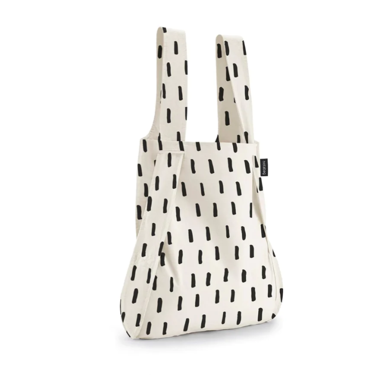 Notabag is the smart combination of a bag and a backpack. It transforms with a single pull on the straps, so you can put it on your back and free your hands.