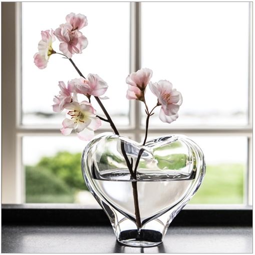 The Romance vase is a hand-sculpted unique one-of-a-kind design. Using similar art glass techniques to the PURE collection, this small-yet-substantial piece is designed with weighty, brilliantly clear glass formed into a classic heart shape.