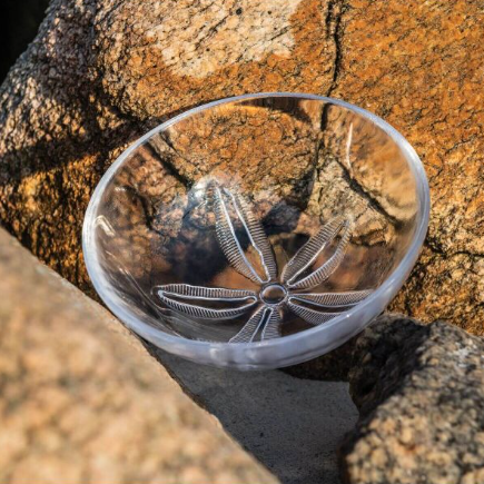 Our Sand Dollar Bowl has the texture of fine sand and the look and feel of real sand dollars. Fill it with sea glass or cherries. The gently curved rim keeps treasure where you can always find it.